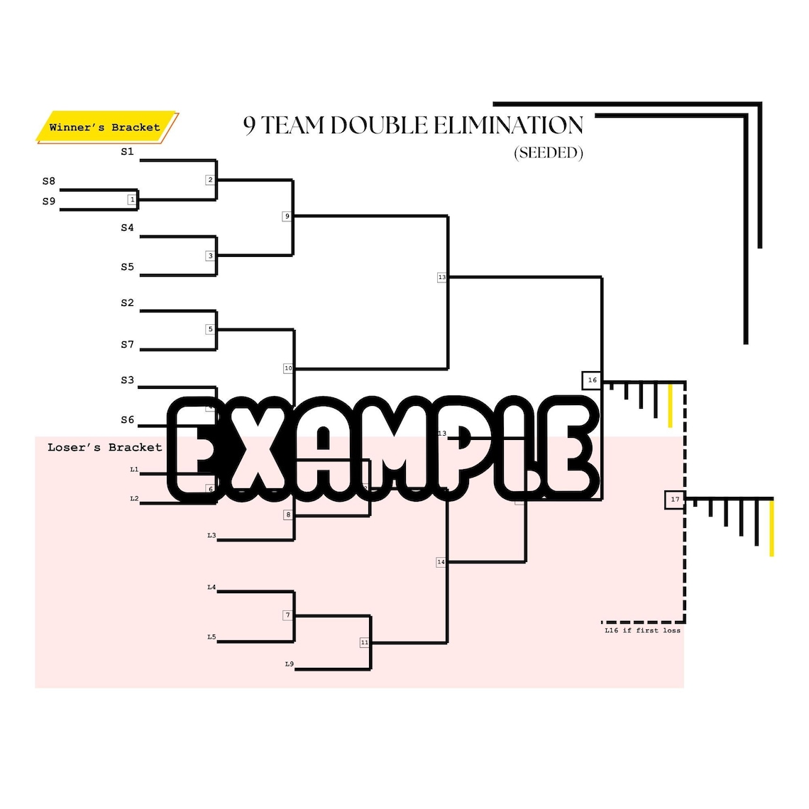 Fillable 9 Team Double Elimination Editable Tourney Bracket