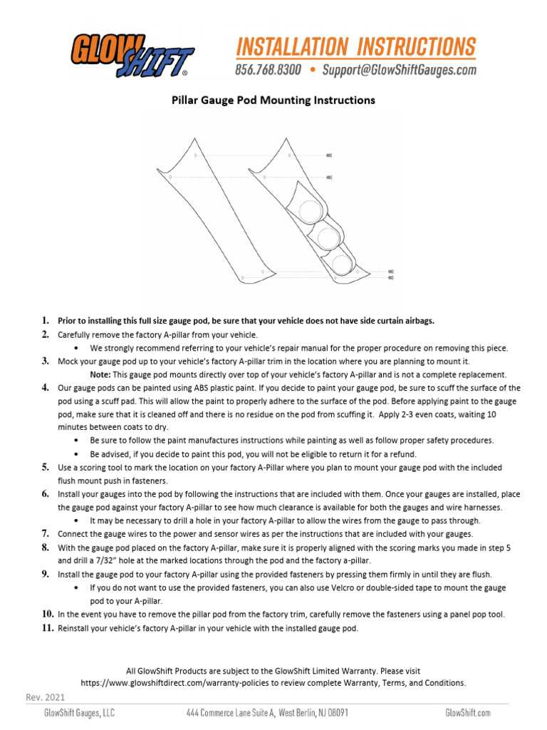 Full Size Gauge Pod Installation Instructions PDF Paint Vehicle
