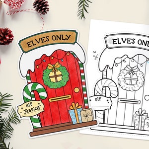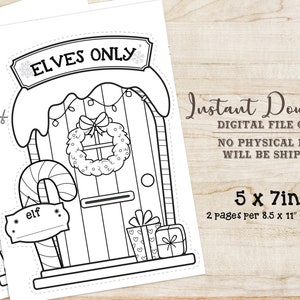 Printable Elf Door Coloring Pages Christmas Activity for Etsy