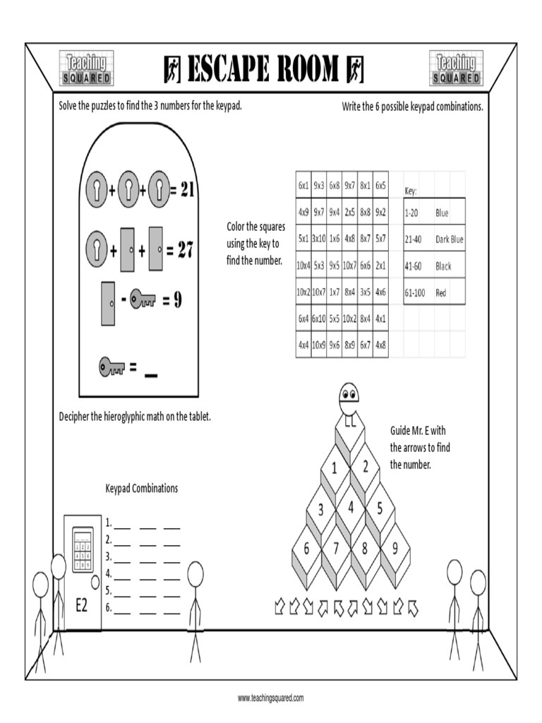 Escape the Room: Room 11 Teaching Squared Worksheets Library