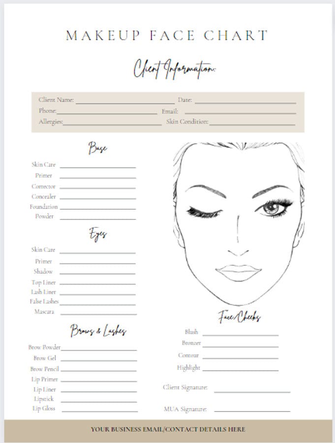 Makeup Face Chart Printable Makeup Practice Sheets Makeover Etsy