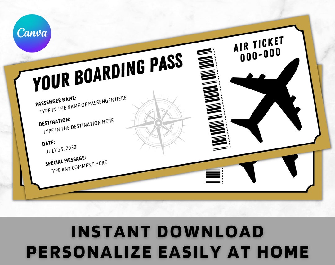 Fake Airplane Ticket Trip Printable Boarding Ticket Editable