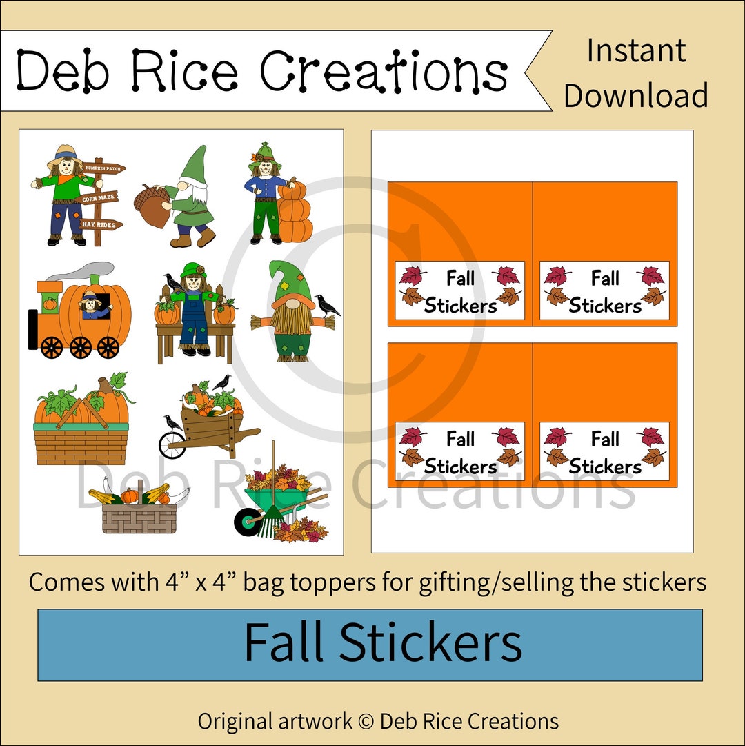 Printable Fall Stickers Printable Stickers Bag Toppers for Etsy