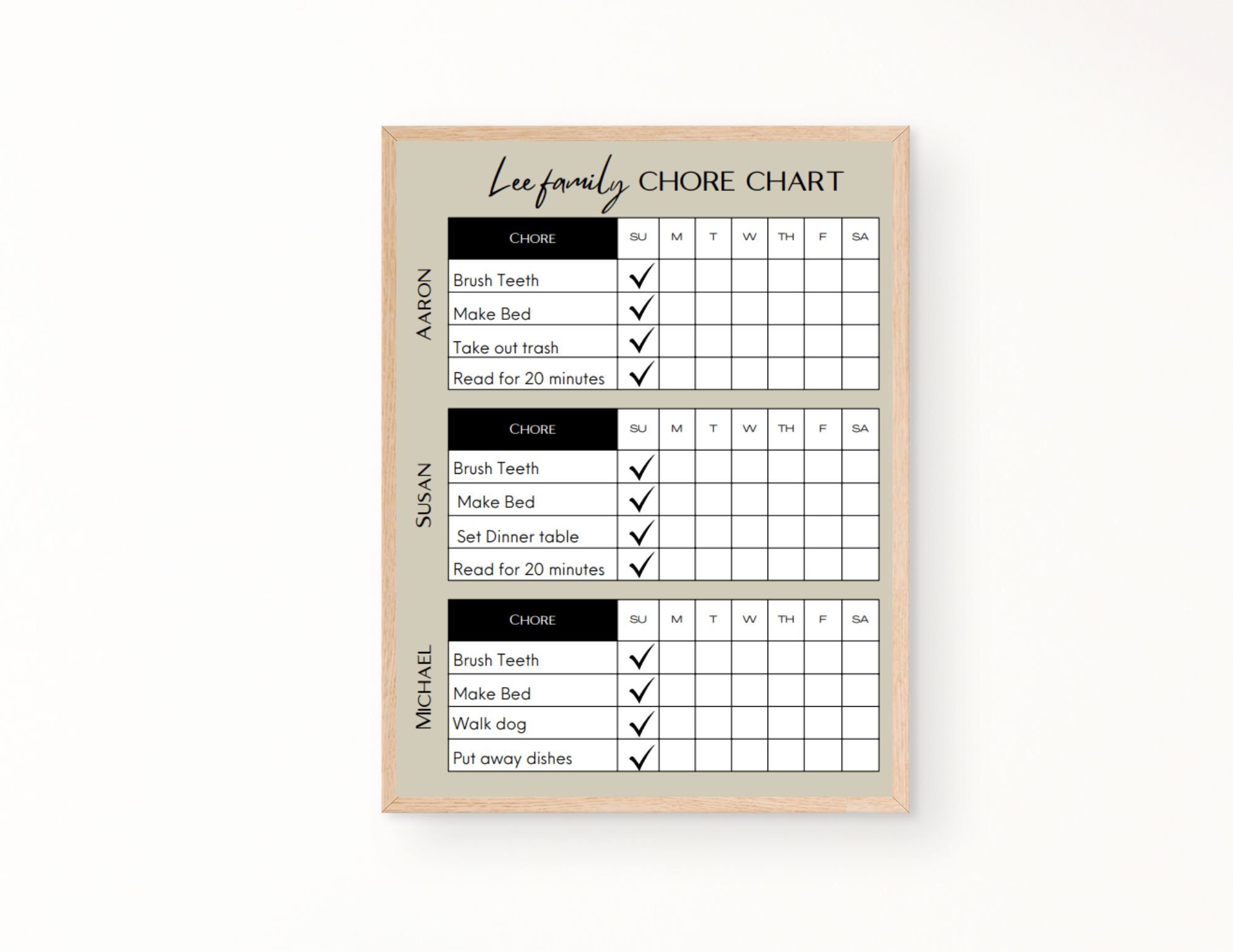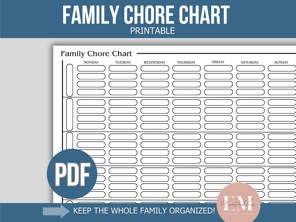 Family Chore Chart Printable and Fillable Digital Download Etsy