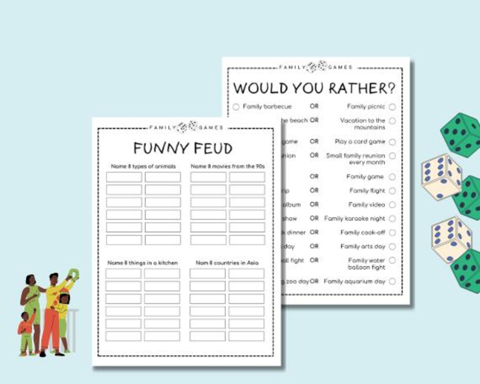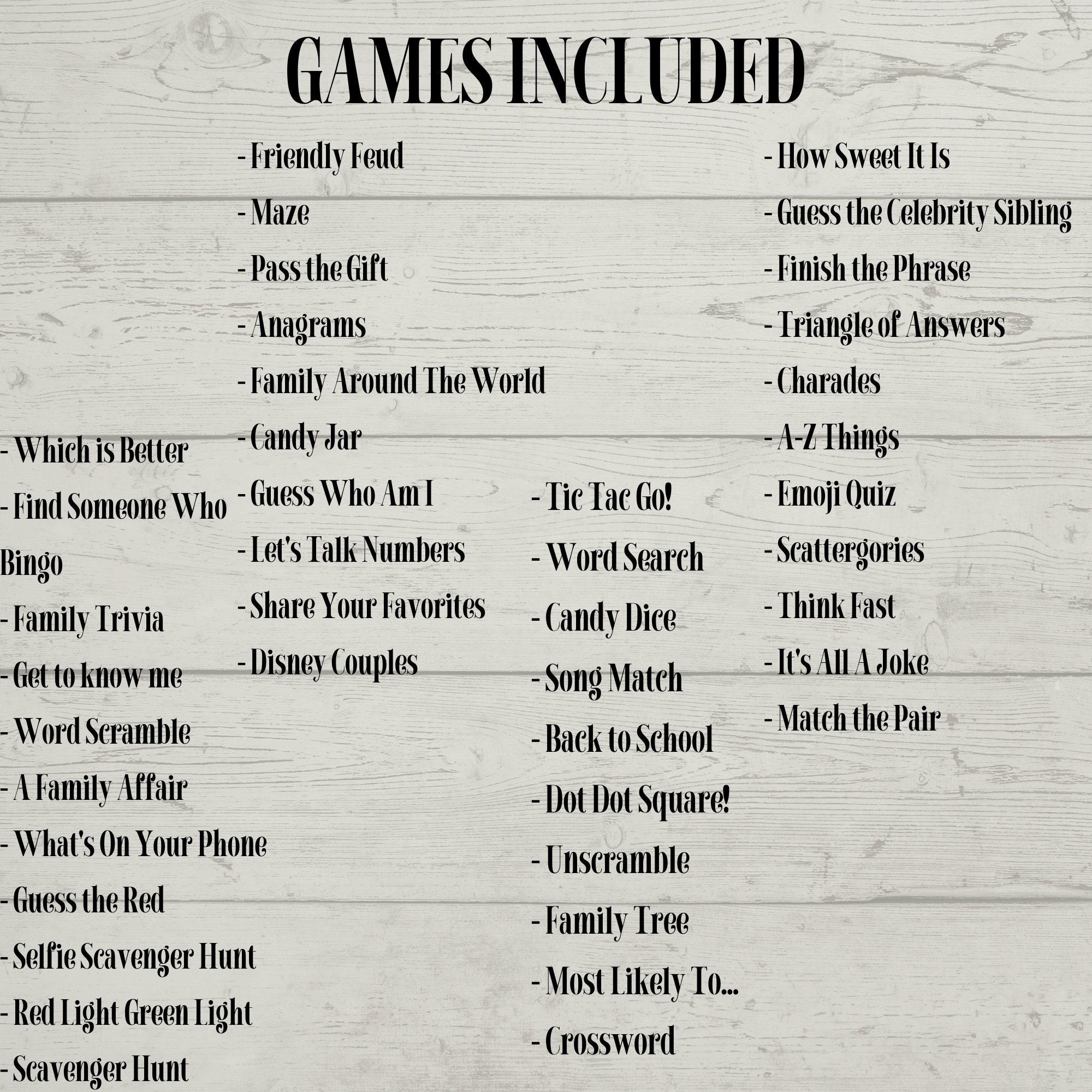 PRINTABLE Family Games Family Night Family Activity Printable Games
