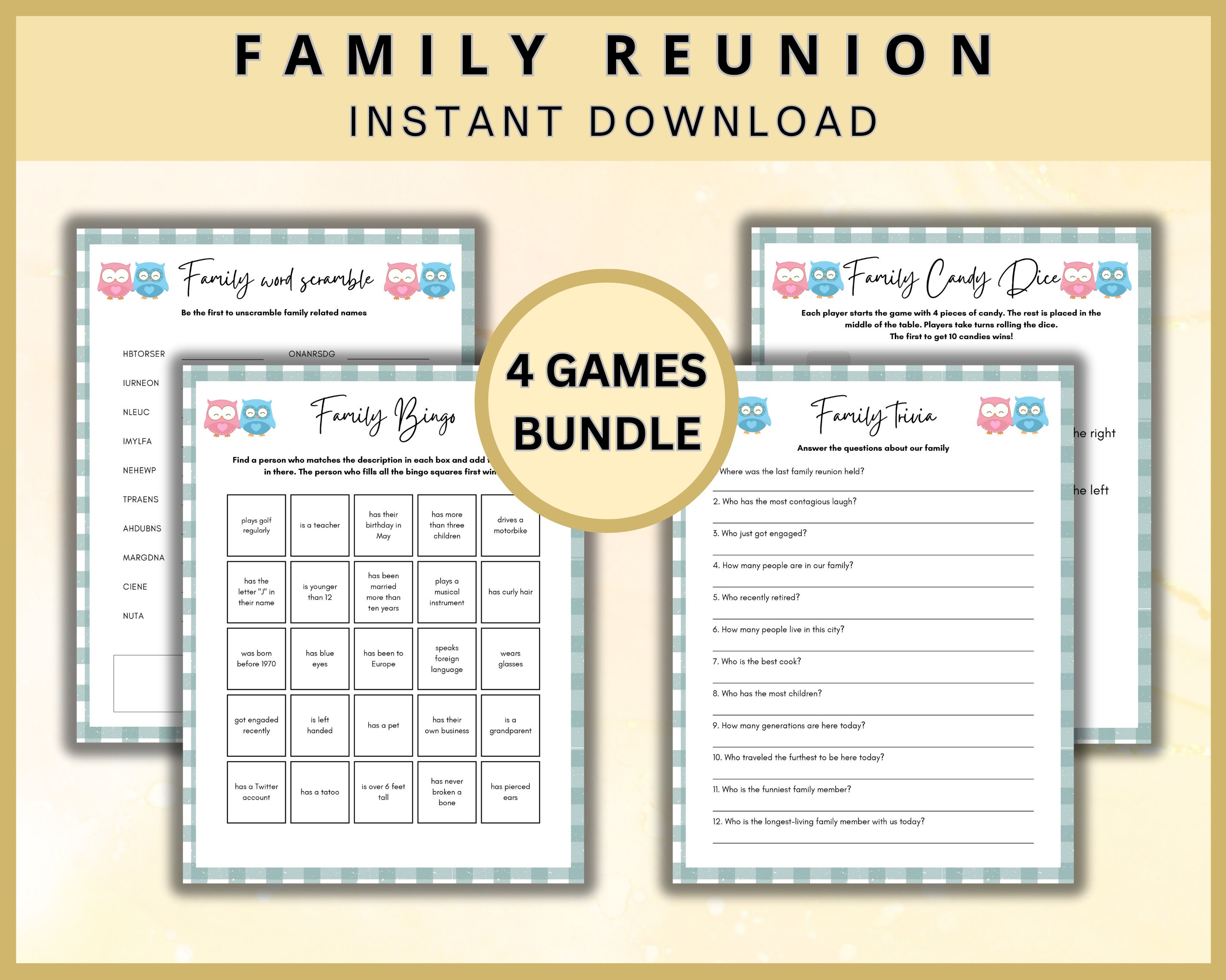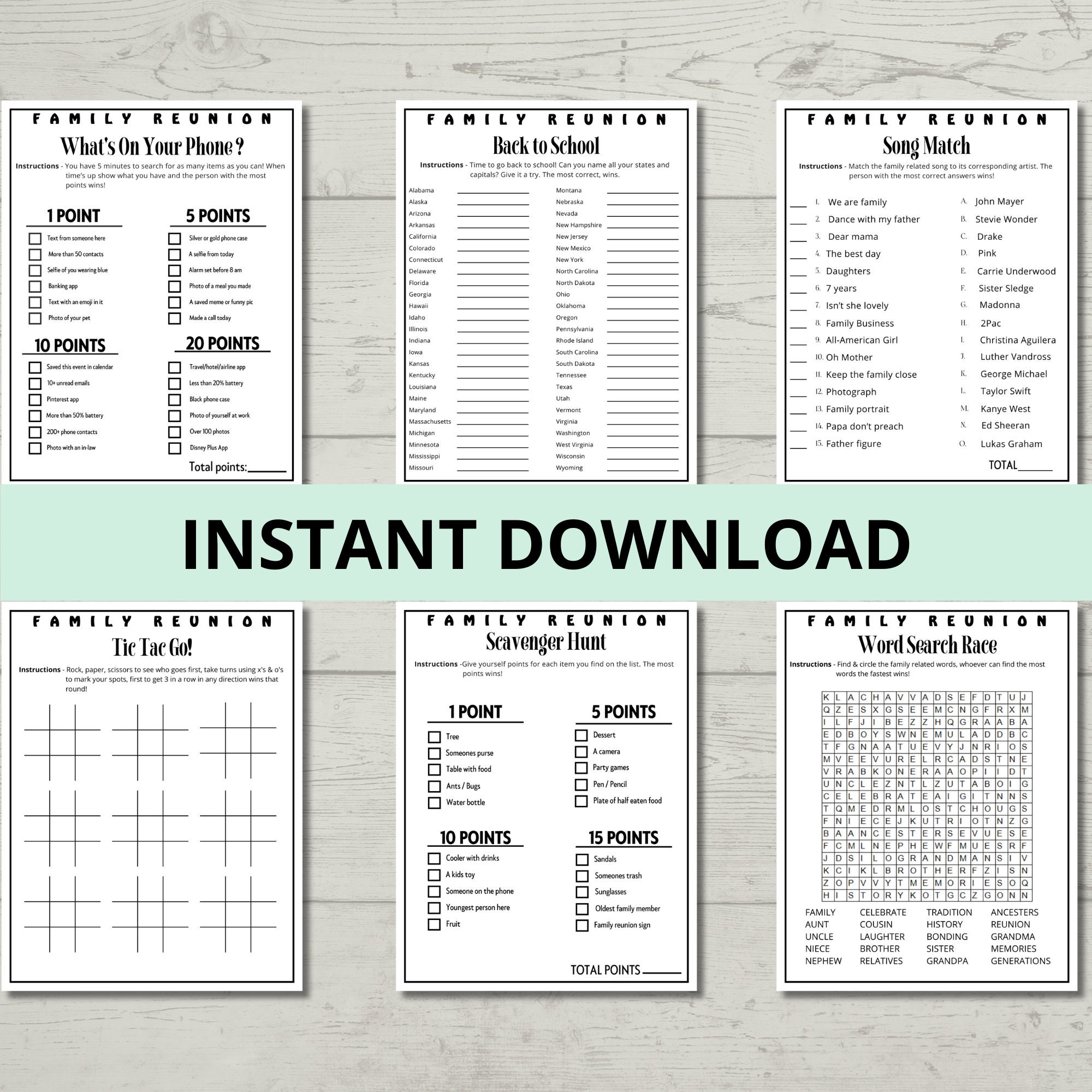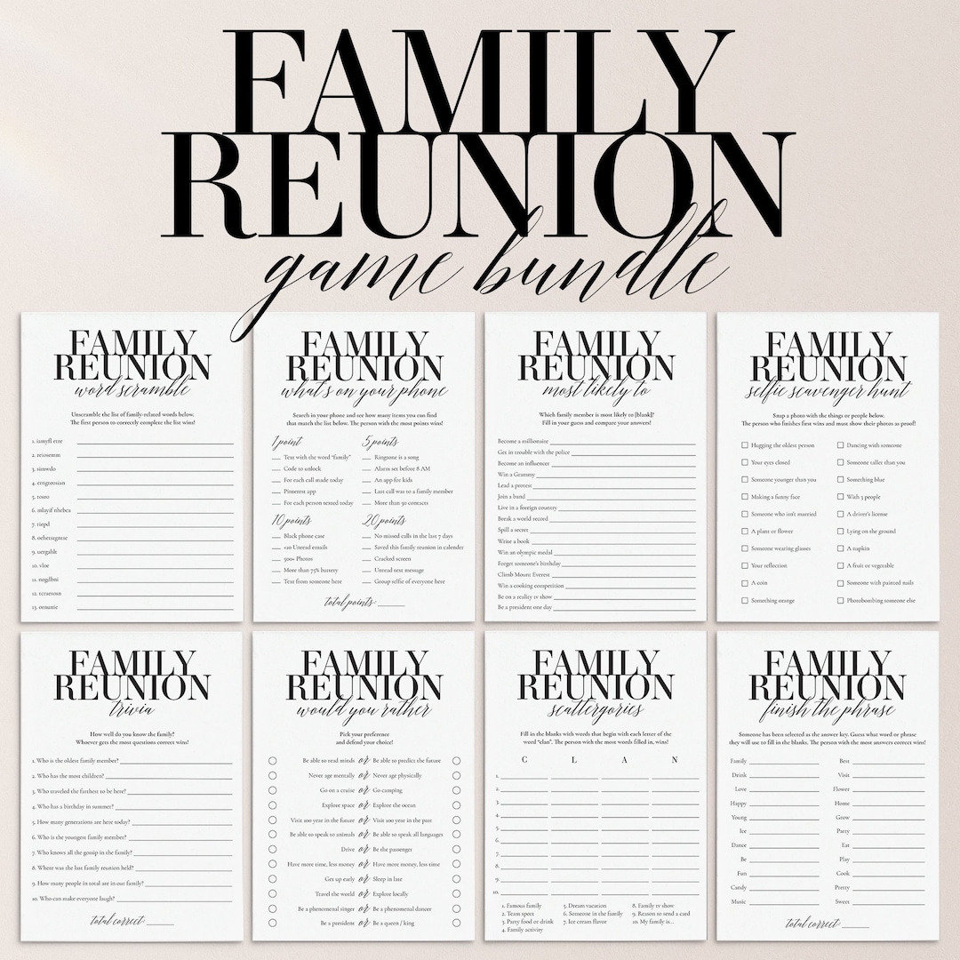 Printable Family Reunion Games Bundle Family Reunion Party Ideas