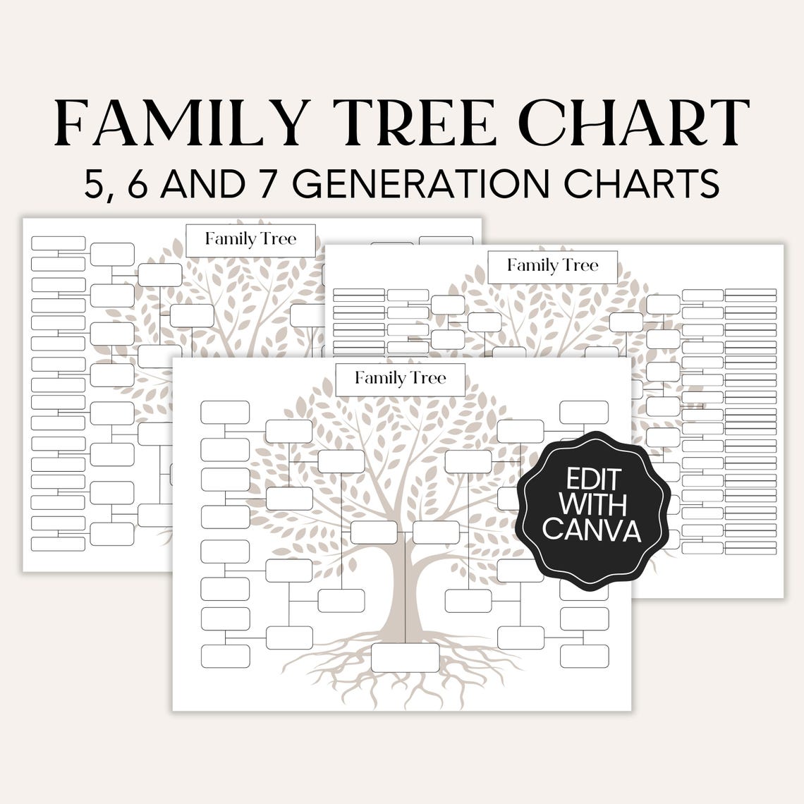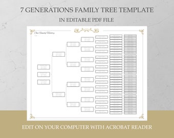Family Tree Chart 7 Generations Printable and Editable Family Tree