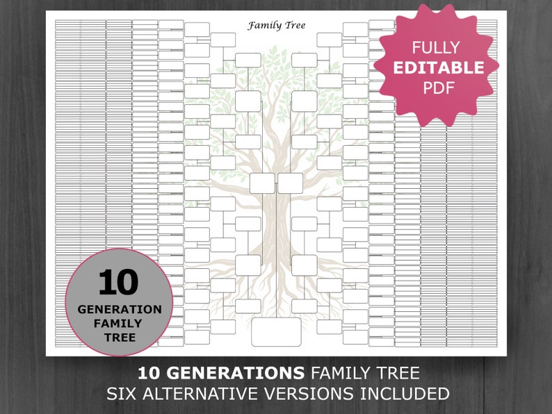 Family Tree Chart 10 Generations Printable and Editable Family Tree