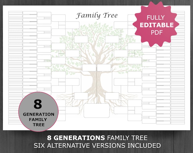 8 Generations Family Tree Chart Printable and Editable Family Tree