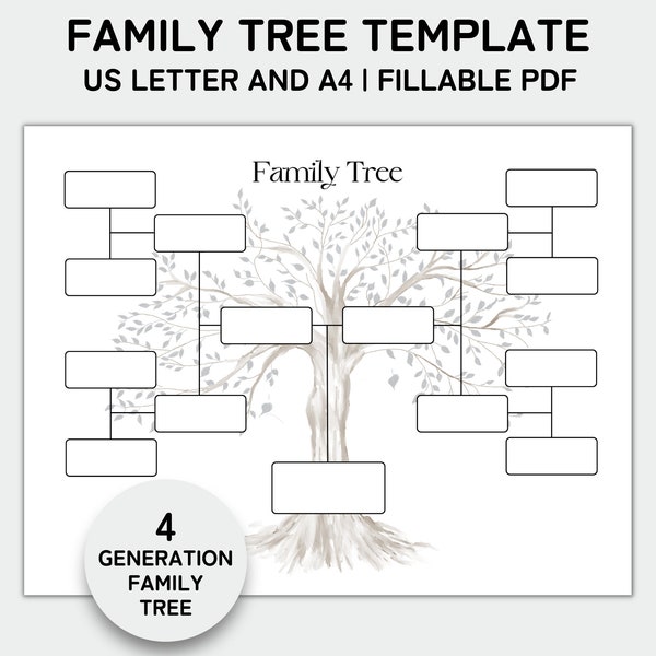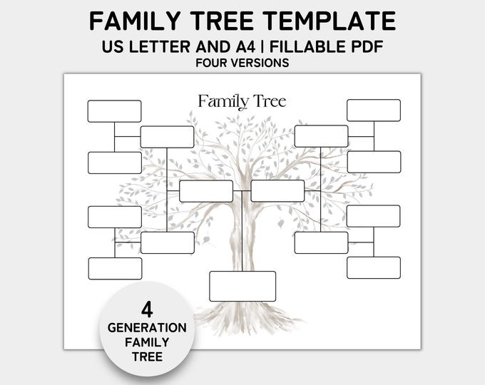 Family Tree Chart 4 Generations Printable and Editable Family Tree