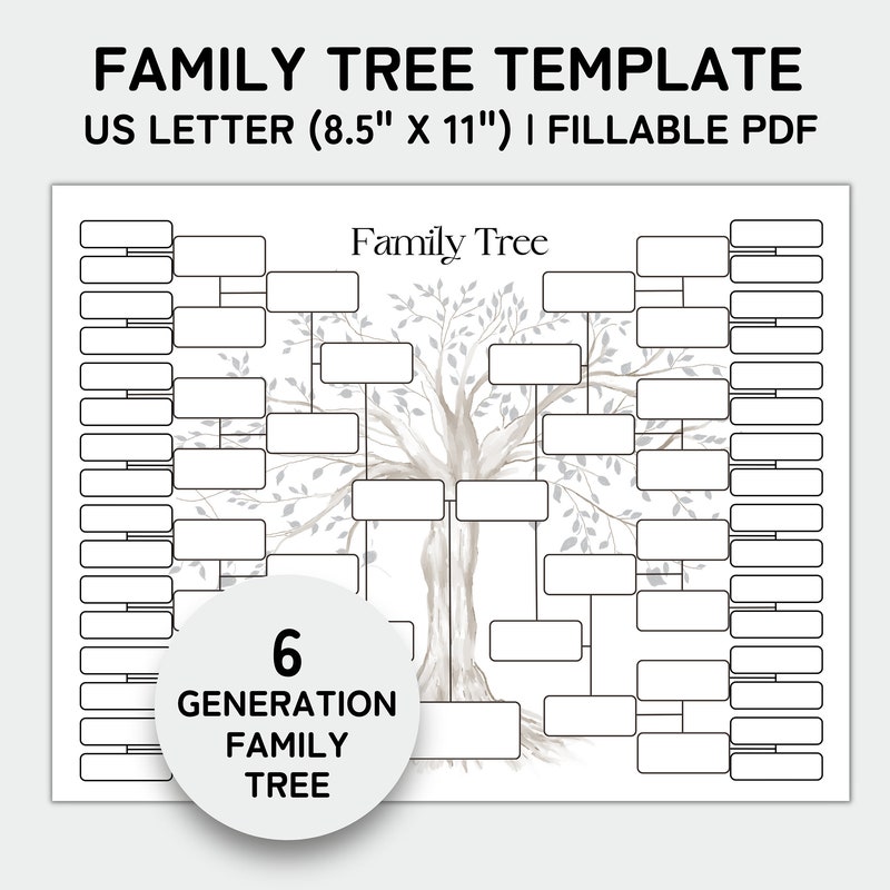 6 Generations Family Tree Chart Printable and Editable Family Tree