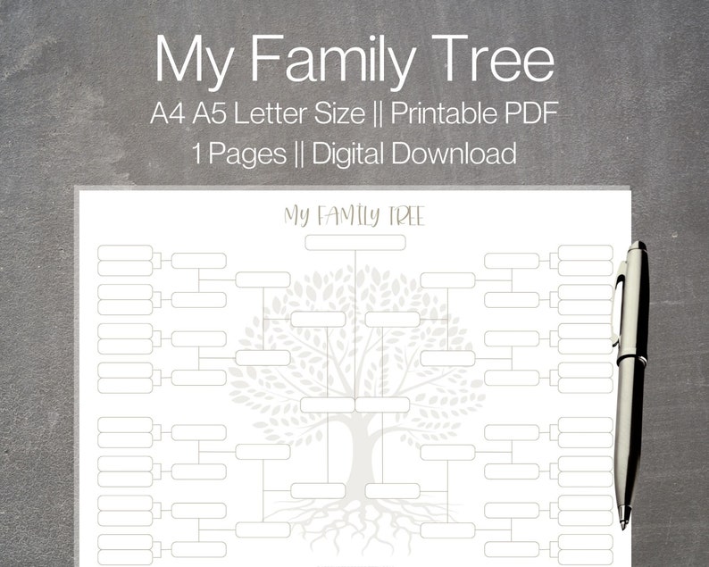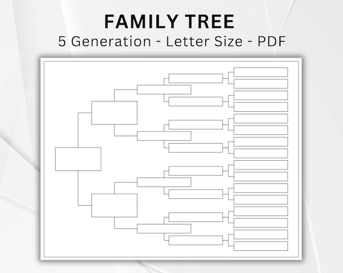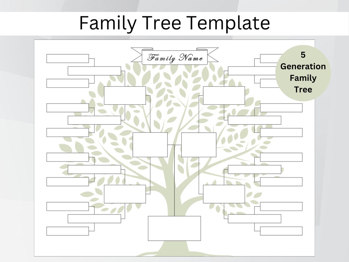 Family Tree Chart 5 Generations Printable and Editable Family Tree