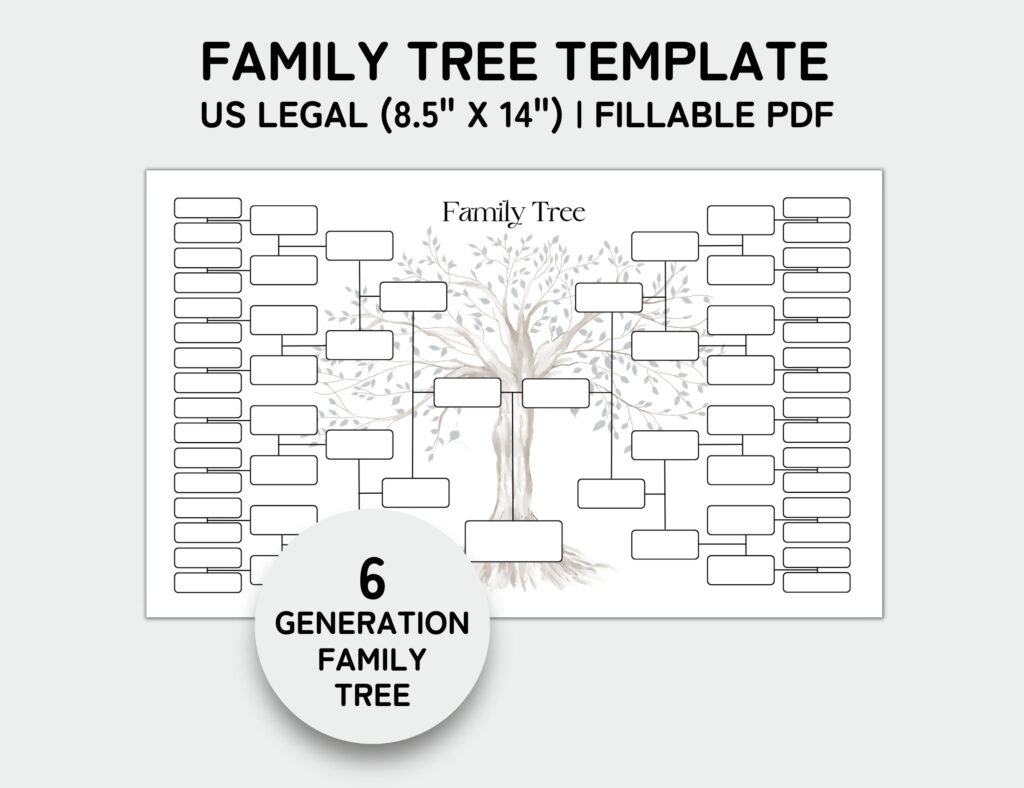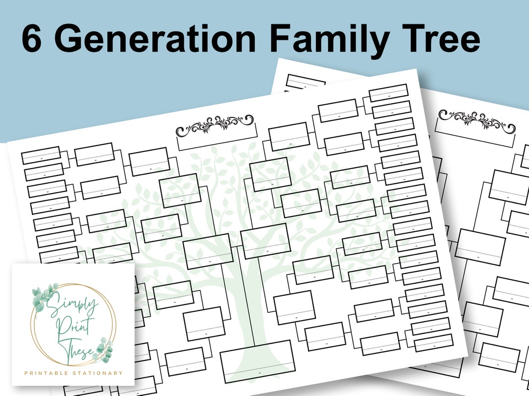 Printable 6 Generation Family Tree PDF Download Blank Etsy