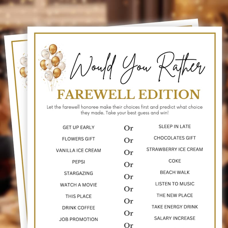 Farewell Party Games Would You Rather Questions Farewell Celebration