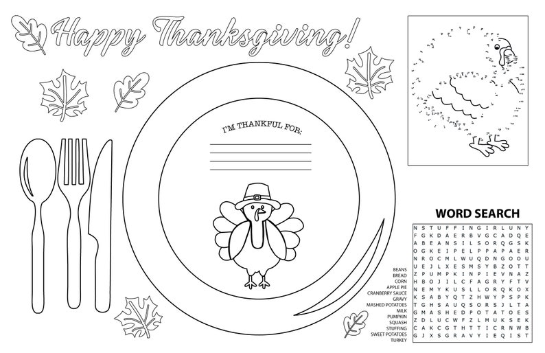 Printable Thanksgiving Placemat for Kids Thanksgiving Activity Place