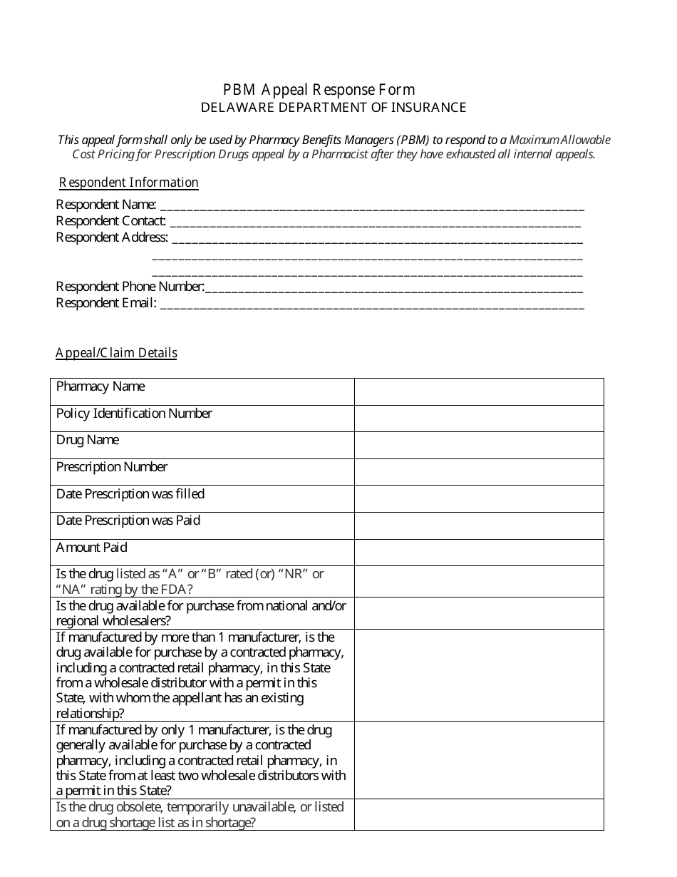 Delaware Pbm Appeal Response Form Fill Out Sign Online and Download
