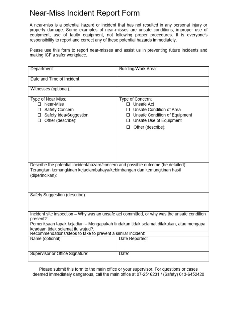 Template For Near Miss Report Form PDF