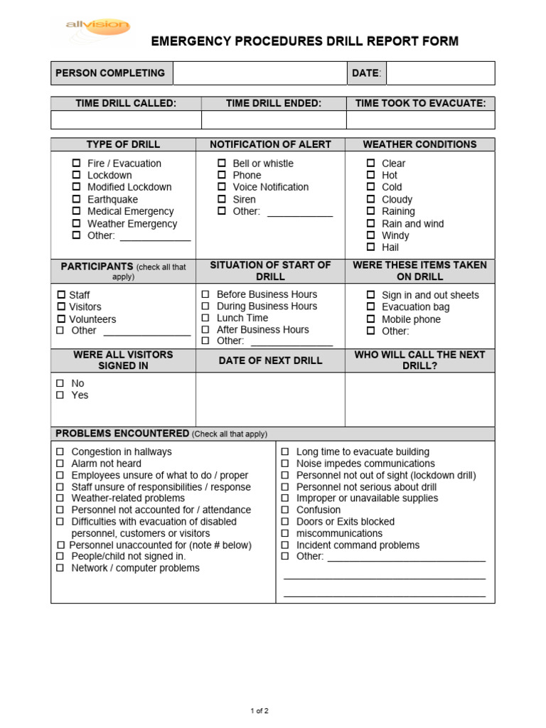 Emergency Drill Form ASC Solutions Library