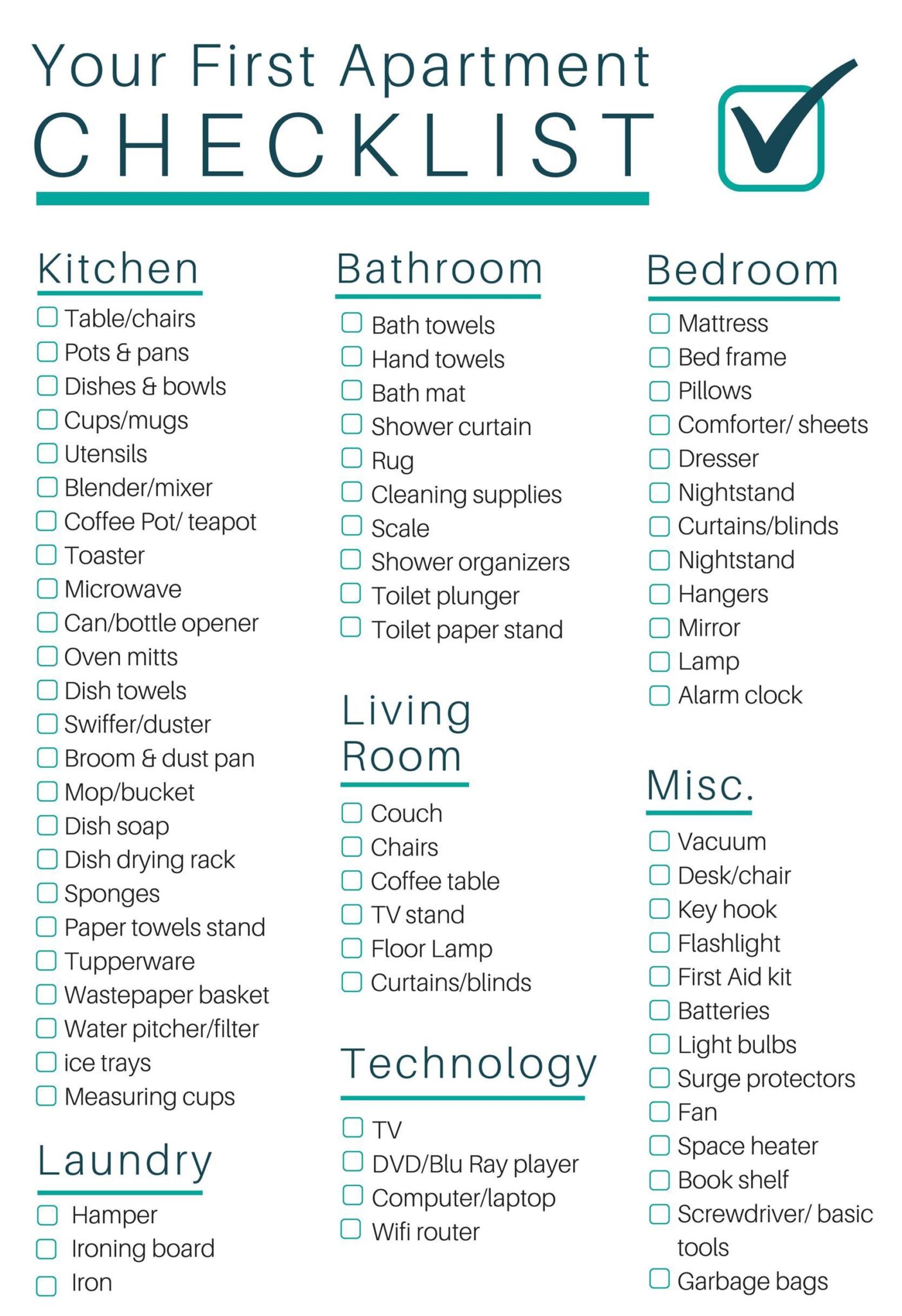 FREE Printable First Apartment Checklist in 2024 First apartment