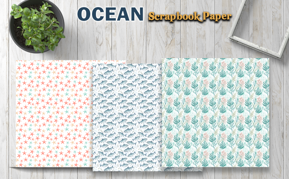 Ocean Scrapbook Paper: Serene Watercolor Coastal Designs Featuring Fish