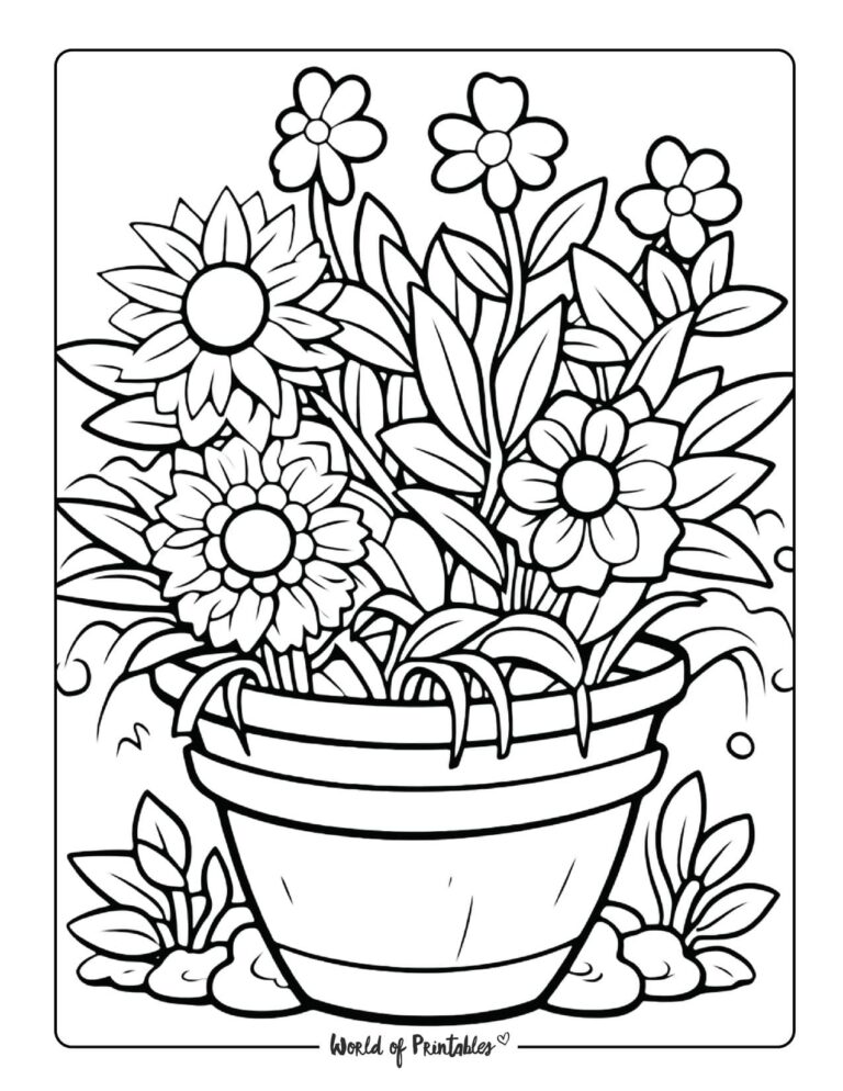 Flower Pot Coloring Pages : Color Your Own Garden Fun MrColoring Com