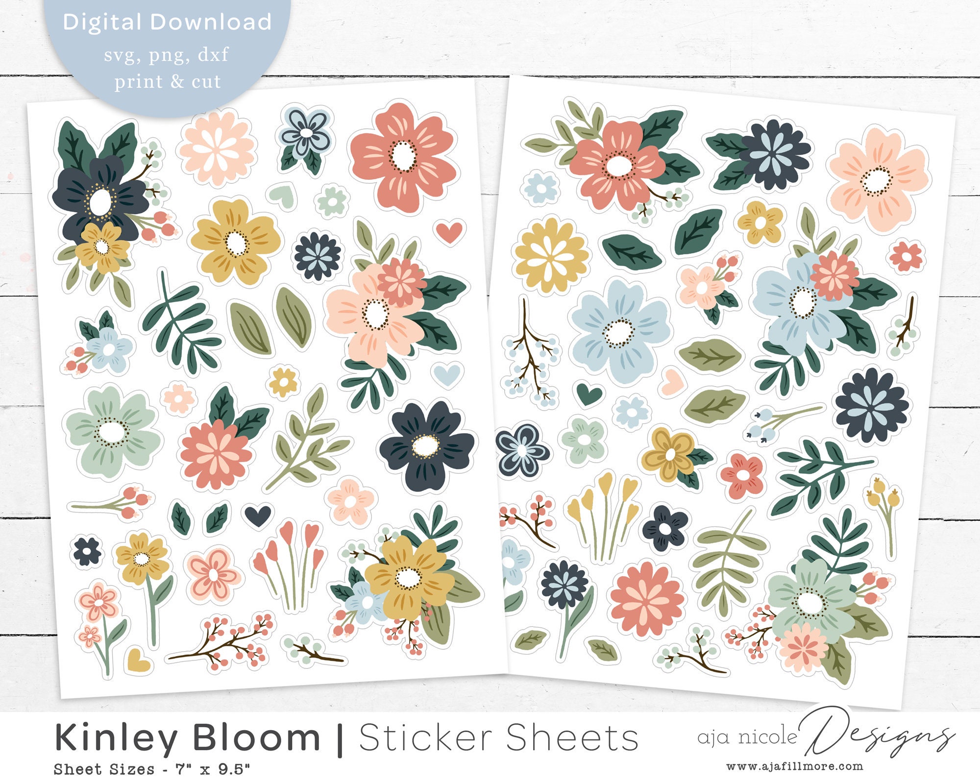 Printable Flower Sticker Set Print and Cut Etsy