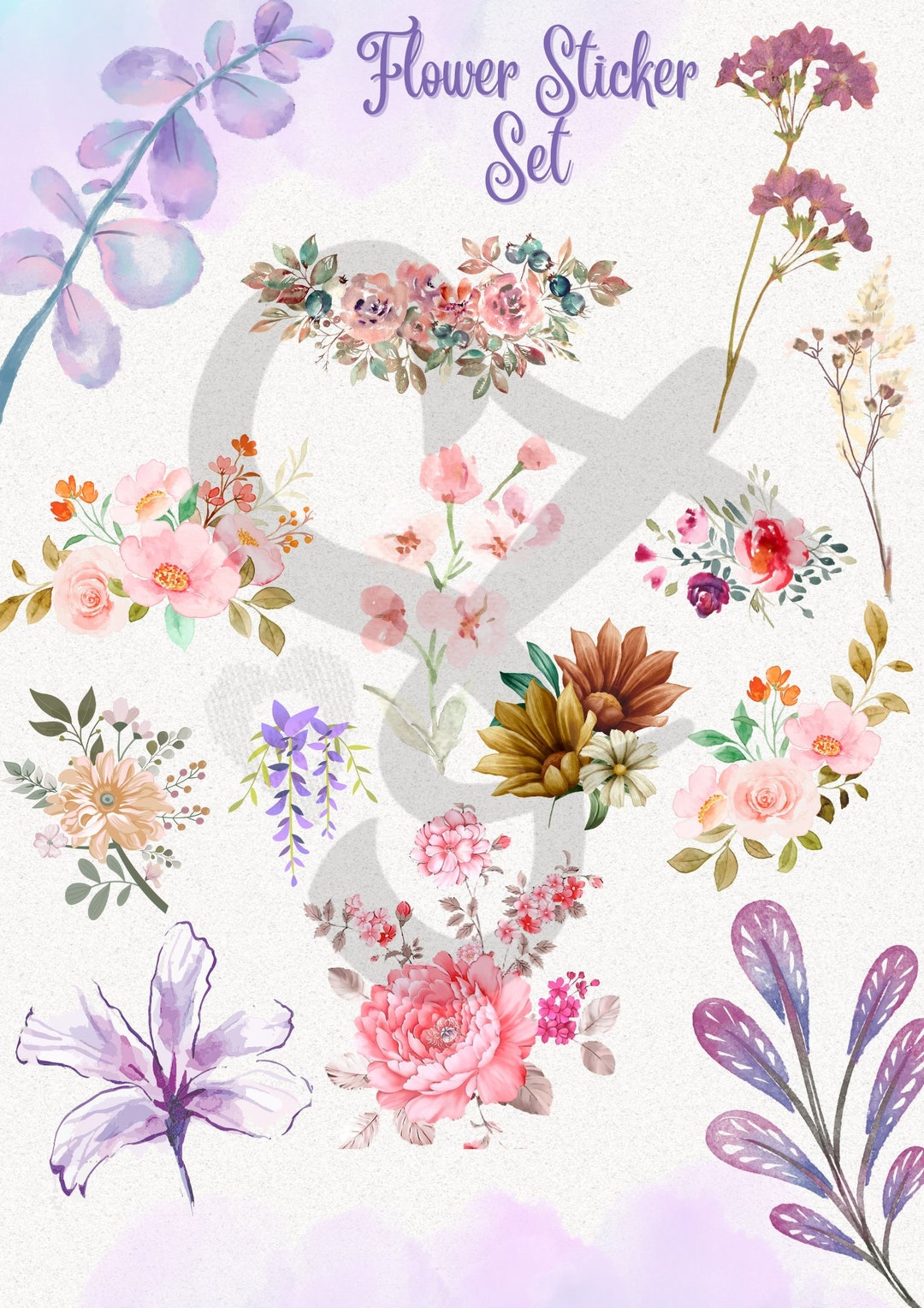 PRINTABLE Flower Sticker Files PNG file Watercolor Flower