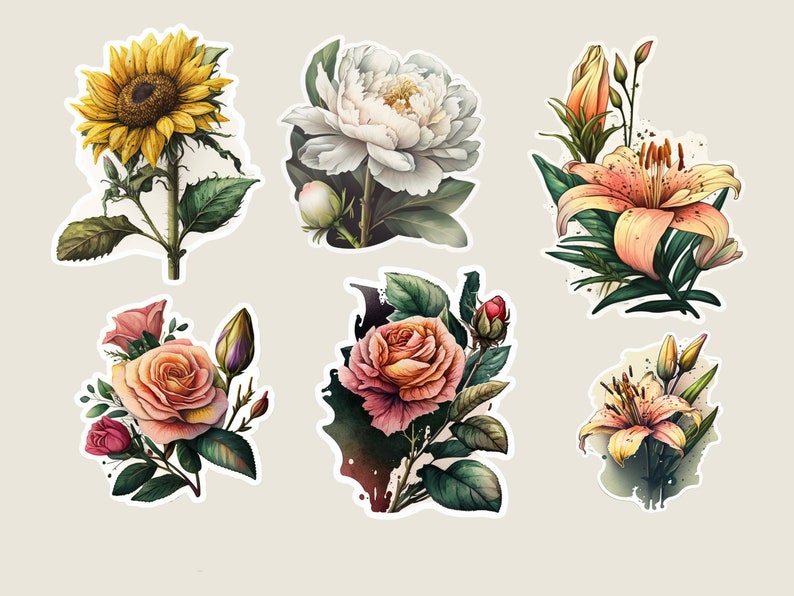 Flower Stickers Printable Stickers Flower Clipart Digital Etsy