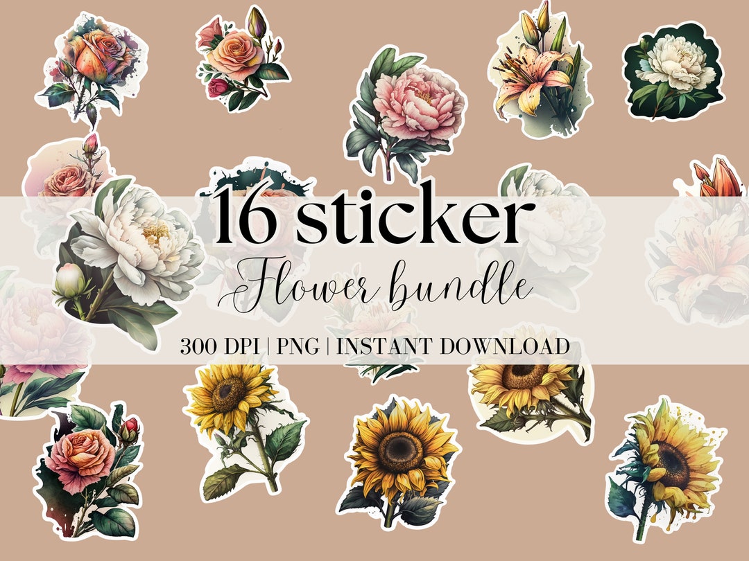 Printable Stickers Flower Stickers Floral Stickers Sticker Etsy