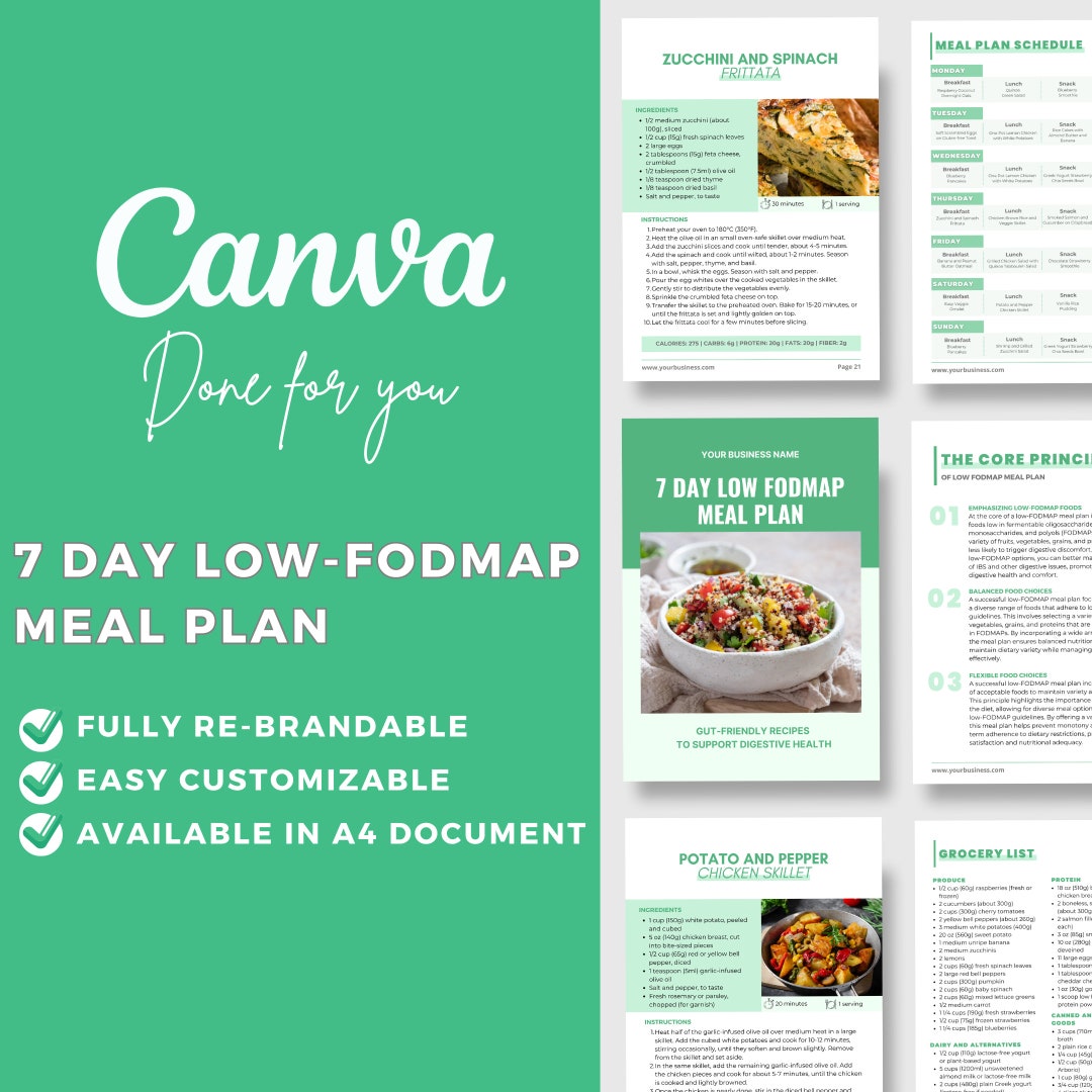 7 Day Low FODMAP Diet Meal Plan Canva Template IBS Management
