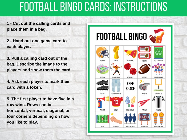 Football Bingo Card Printable Football Bingo Game (Instant Download) Etsy