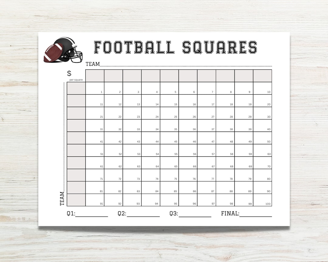 Printable 100 Squares Football Grid Numbers Instant Download Etsy