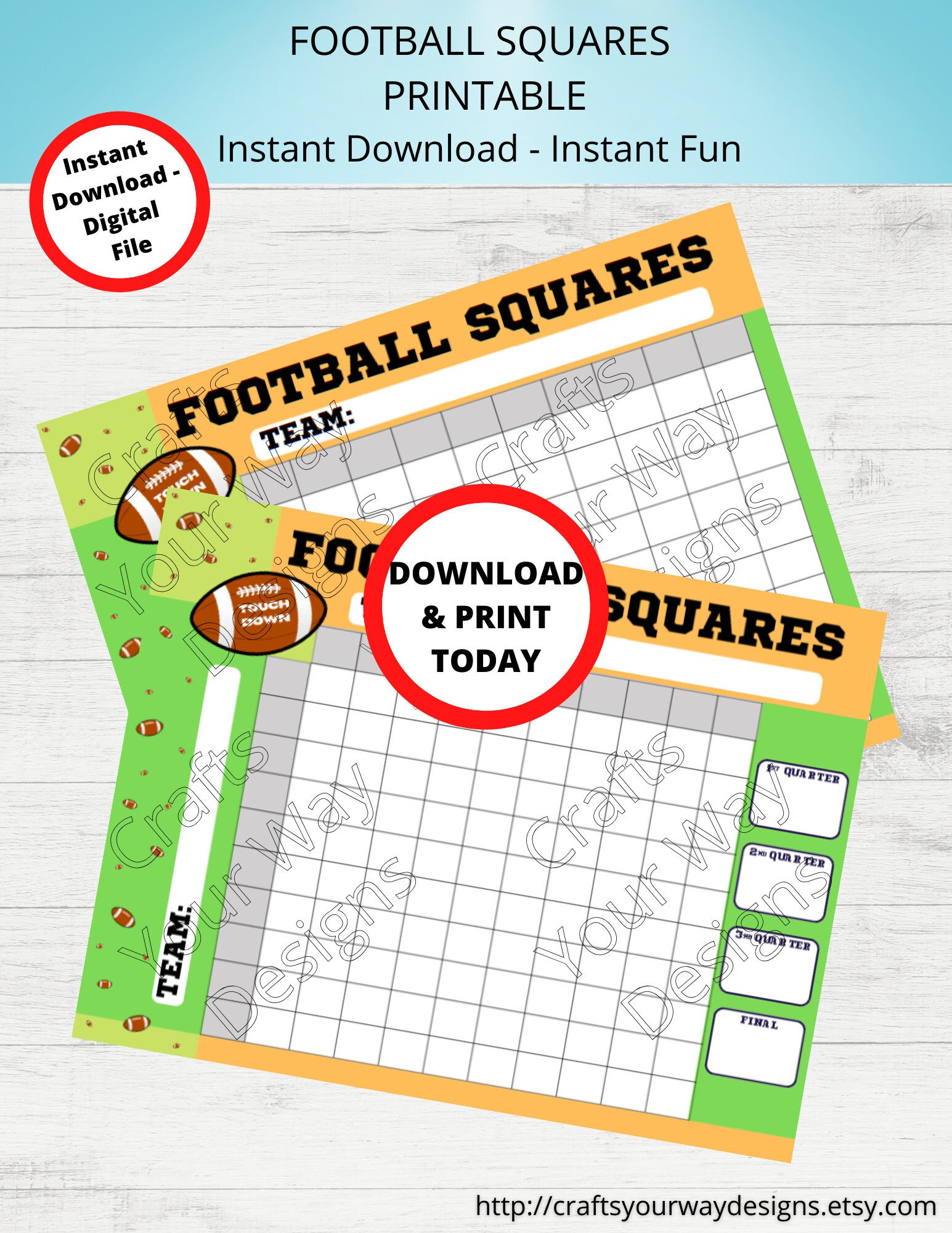 Printable FOOTBALL SQUARES GAME Instant Download Football Pool