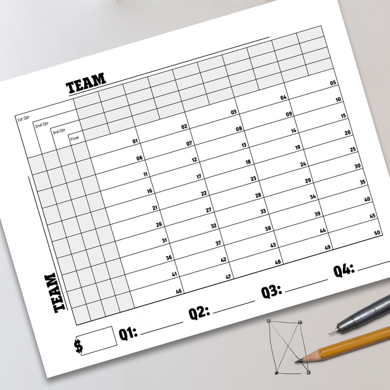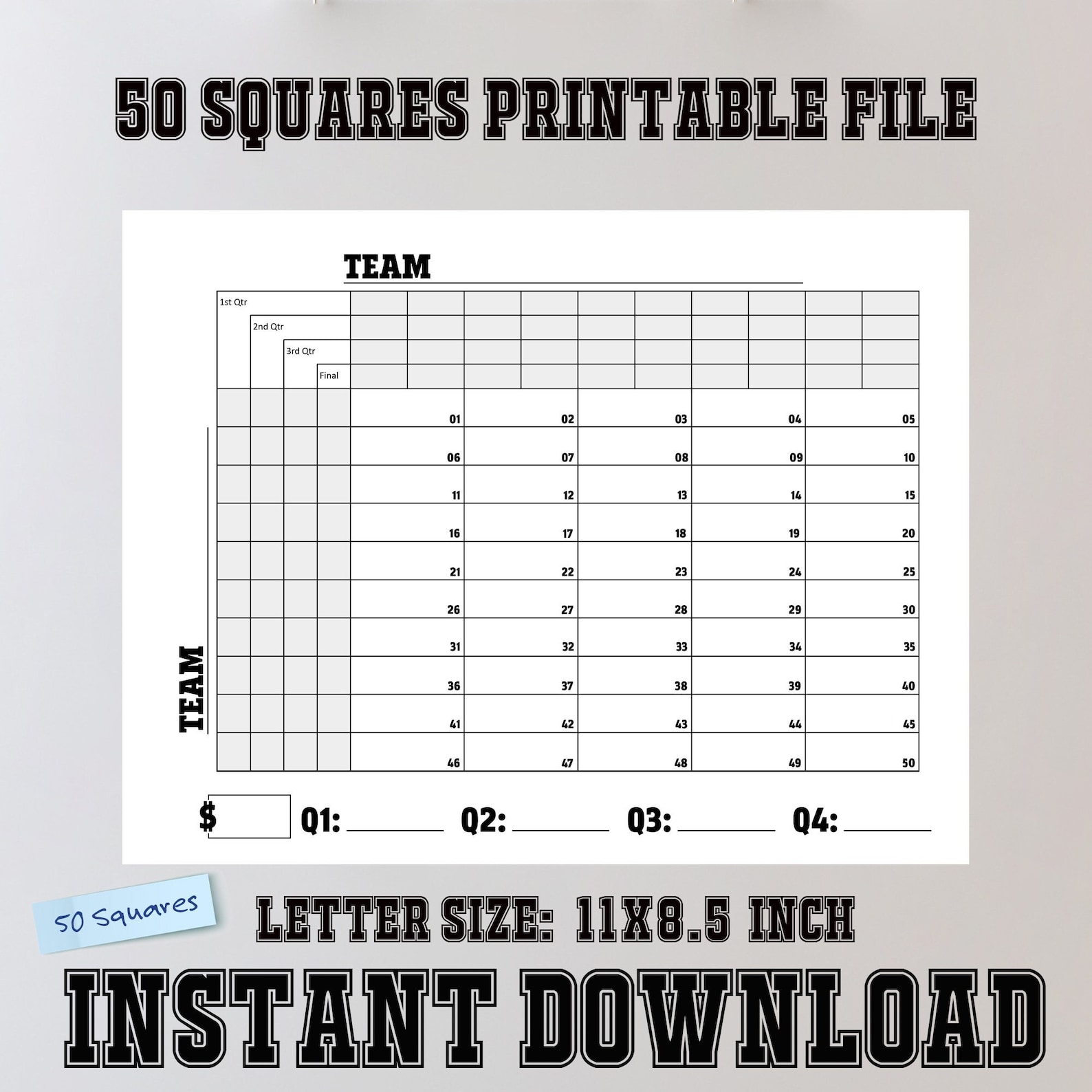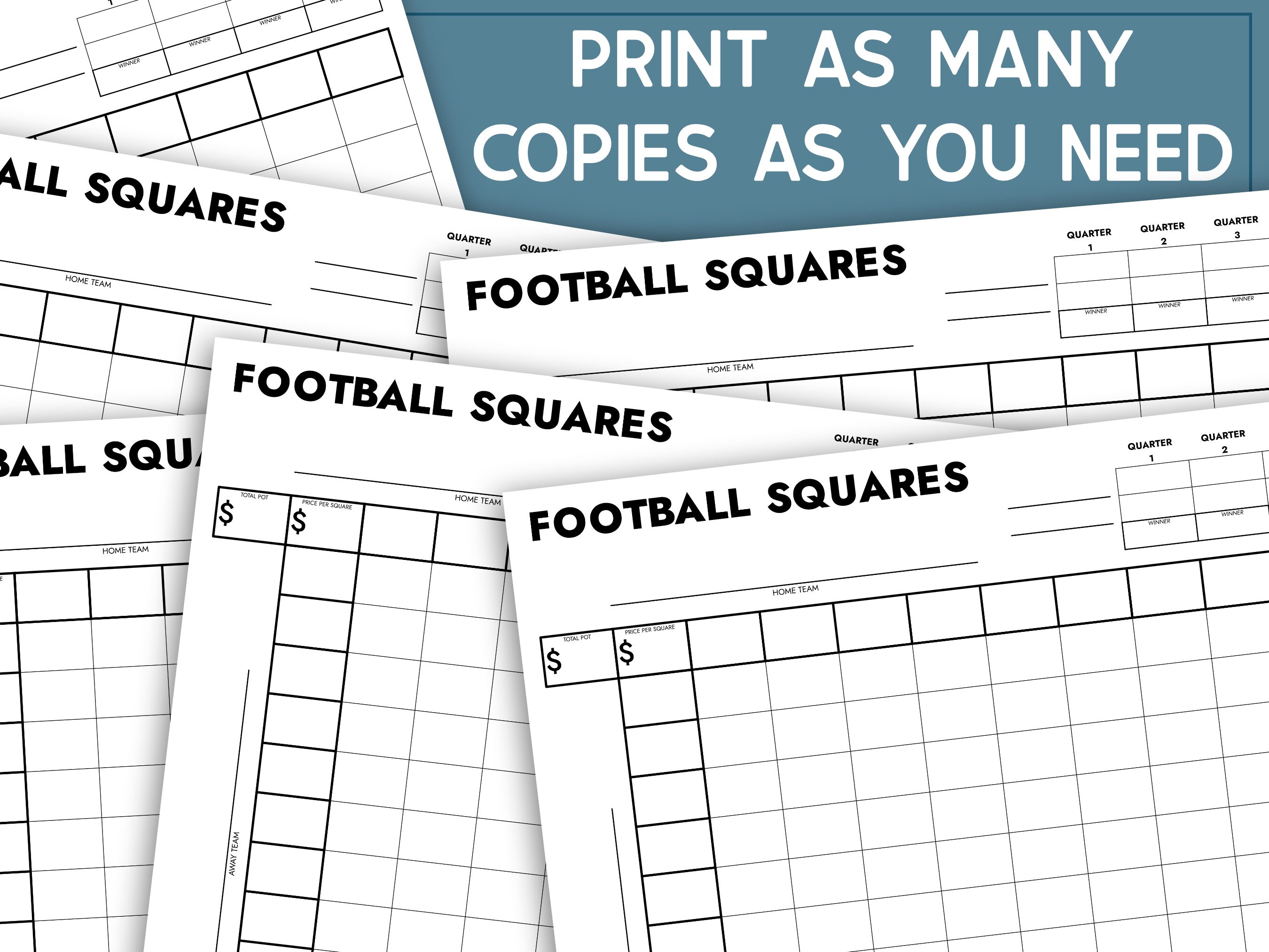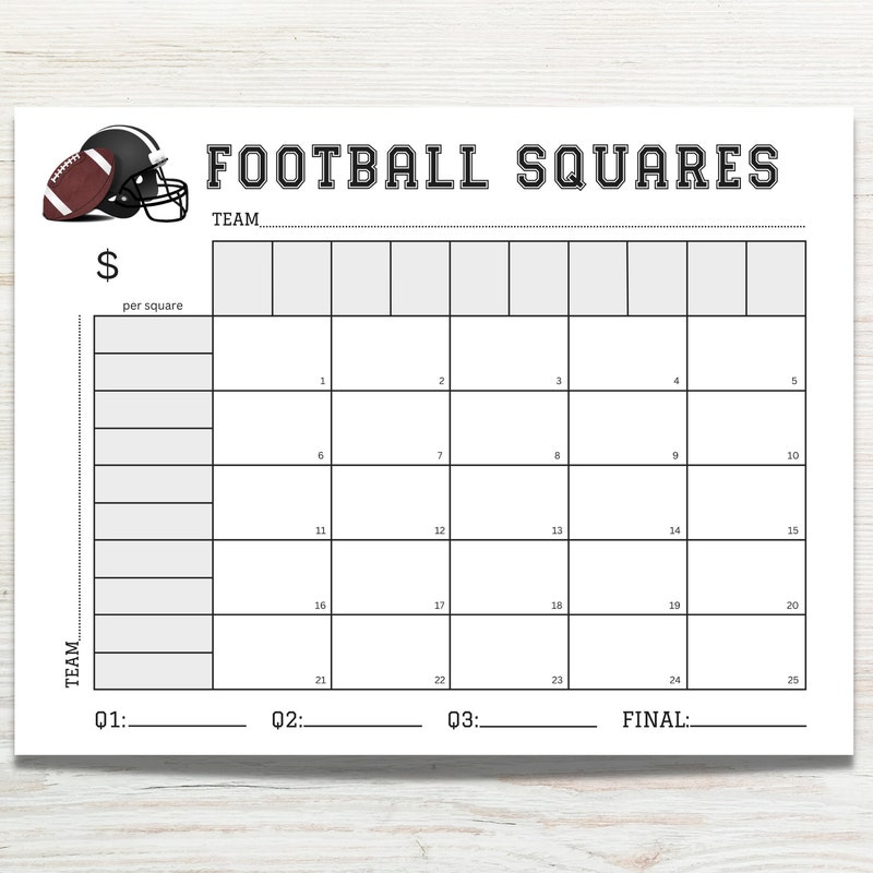 Football Squares Printable Numbered Grid for Superbowl (JPG PDF) Etsy