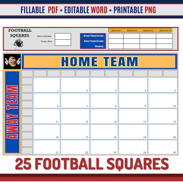 25 Football Squares Template Printable Christmas Eve and Day Etsy