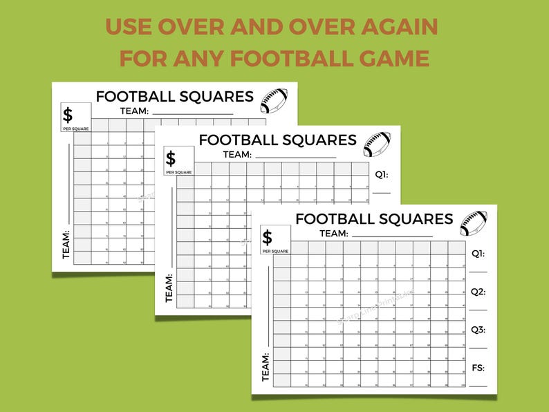 Printable Football Squares Game Template Fundraiser Game Football 100