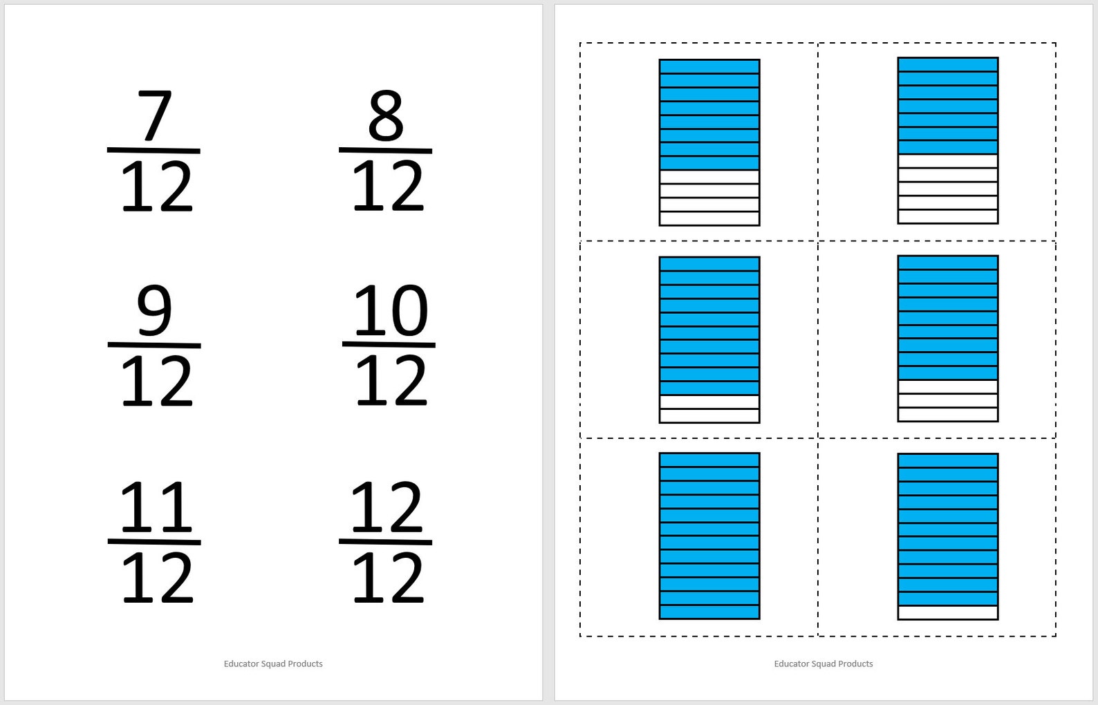 Fraction Flashcards and Fraction Worksheets printable to 12 TPT