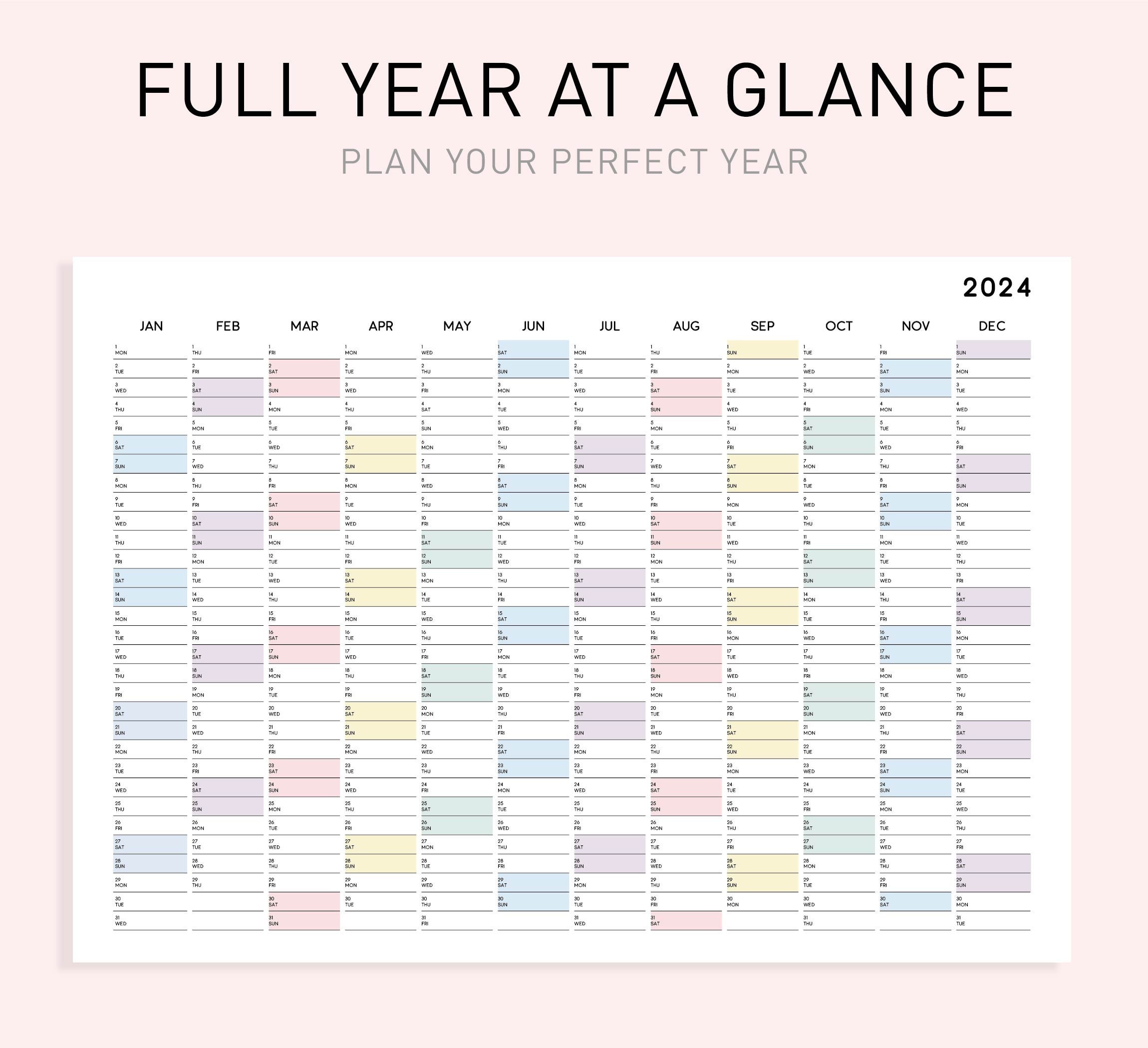 Printable 2024 Calendar 2024 Full Year Calendar Year at a Glance