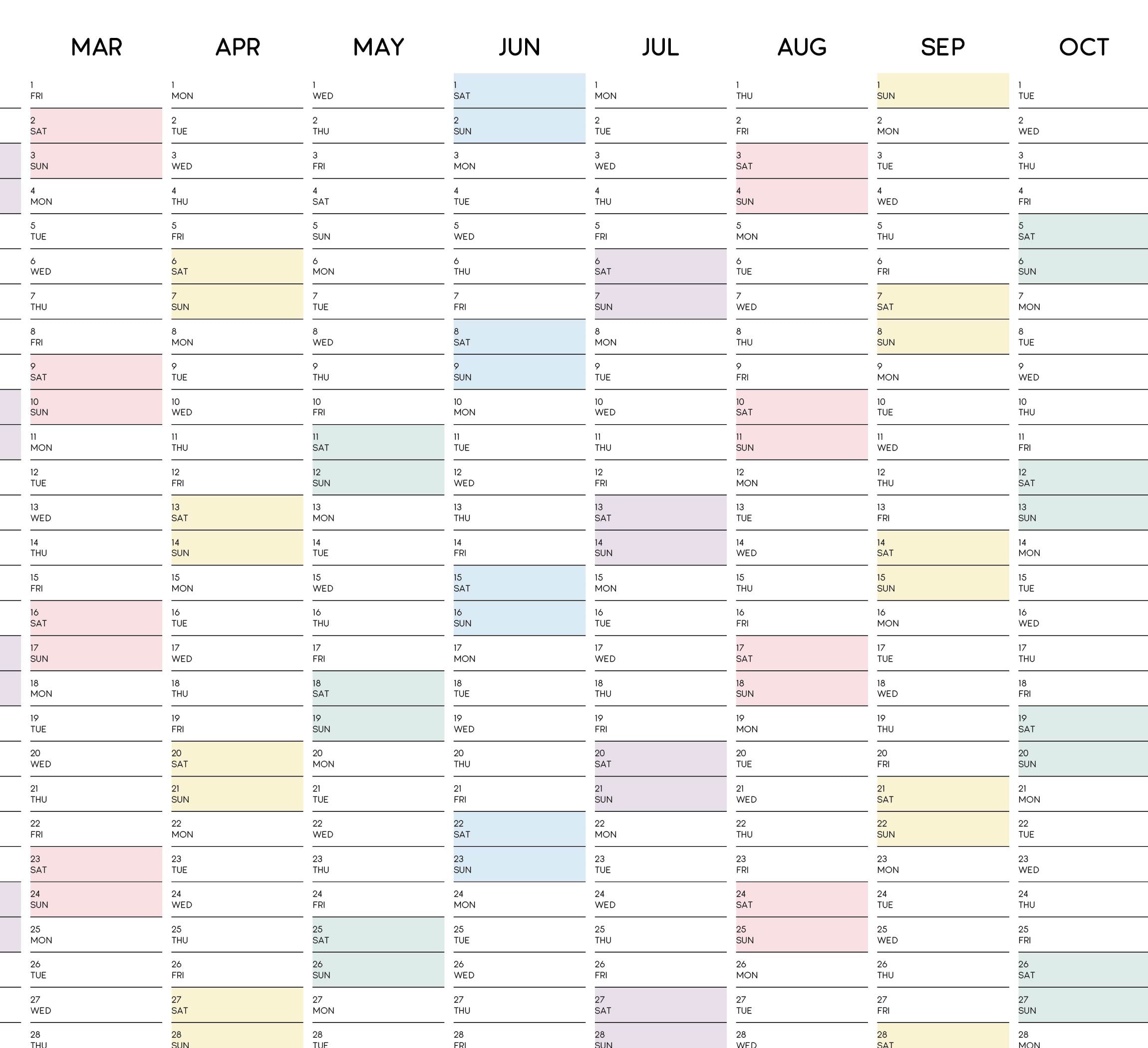 Full Year Calendar 2024 2024 Monthly Planner 2024 Rainbow Yearly