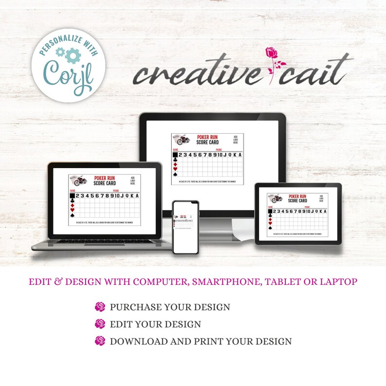 Poker Run Scorecard Printable Editable Score Sheet for Motorcycle