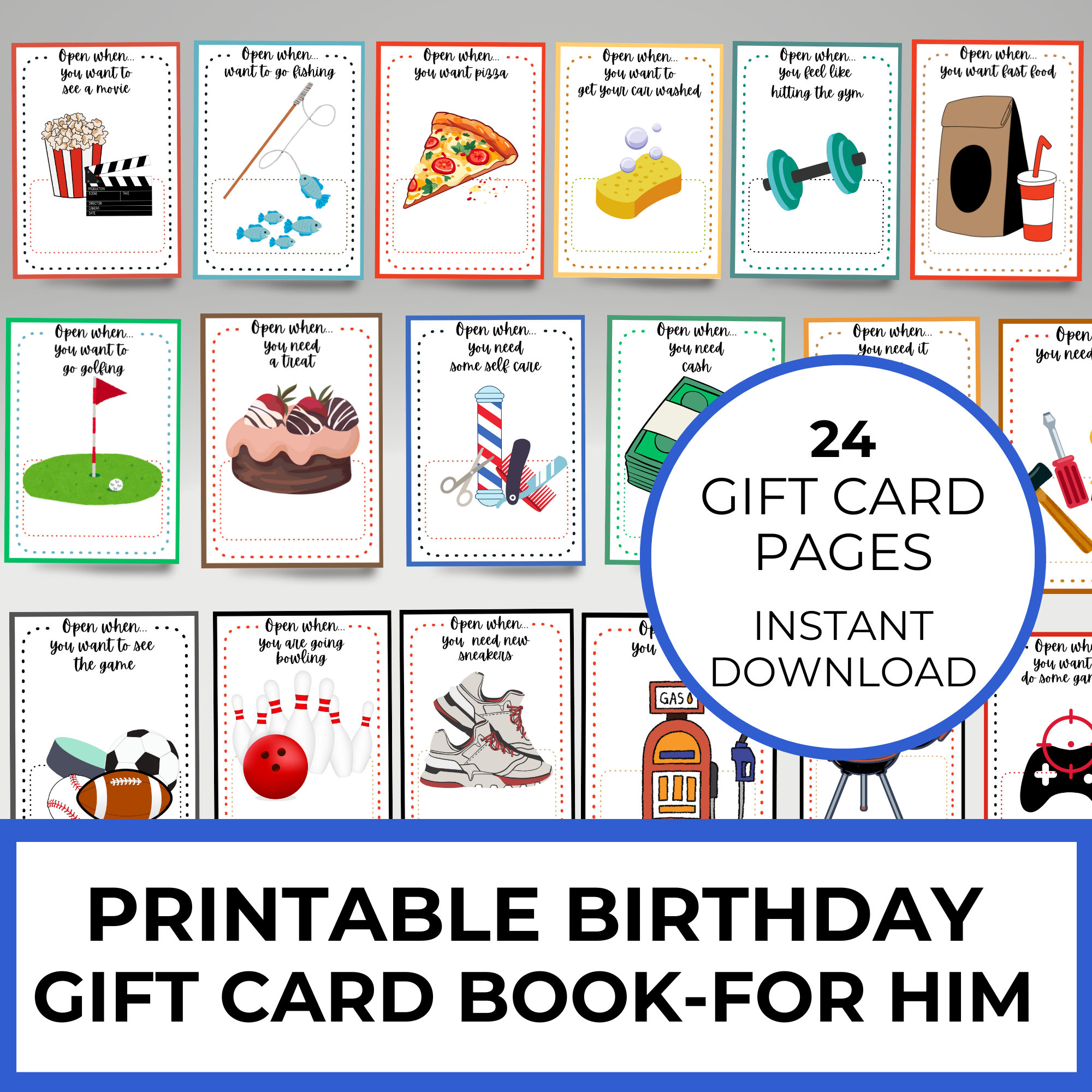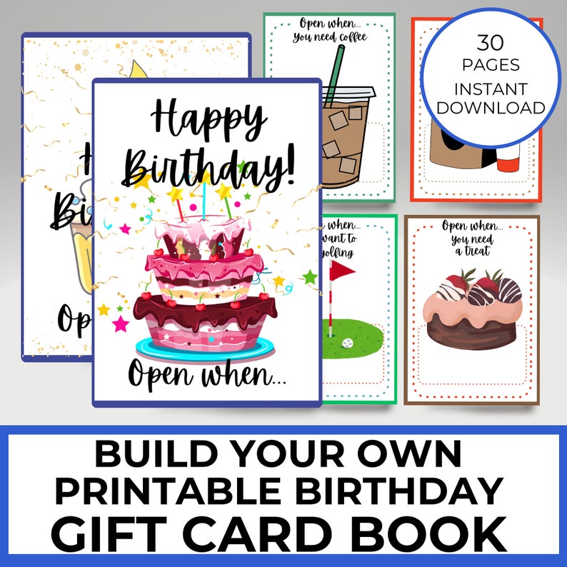 Birthday Gift for Him Printable Gift Card Book for Husband Gift Card