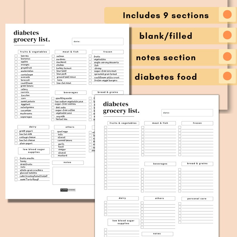 Printable Diabetic Grocery Food List Weekly Planner Diabetes