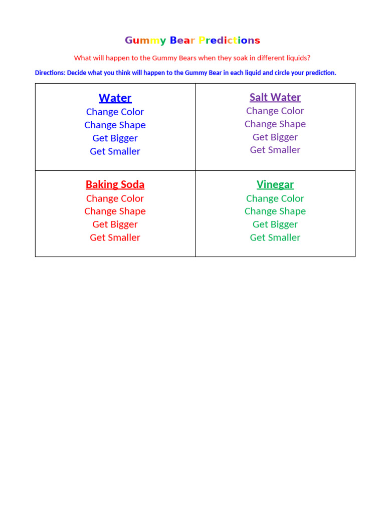 Gummy Bear Science Experiment Worksheet Printable And Enjoyable Learning