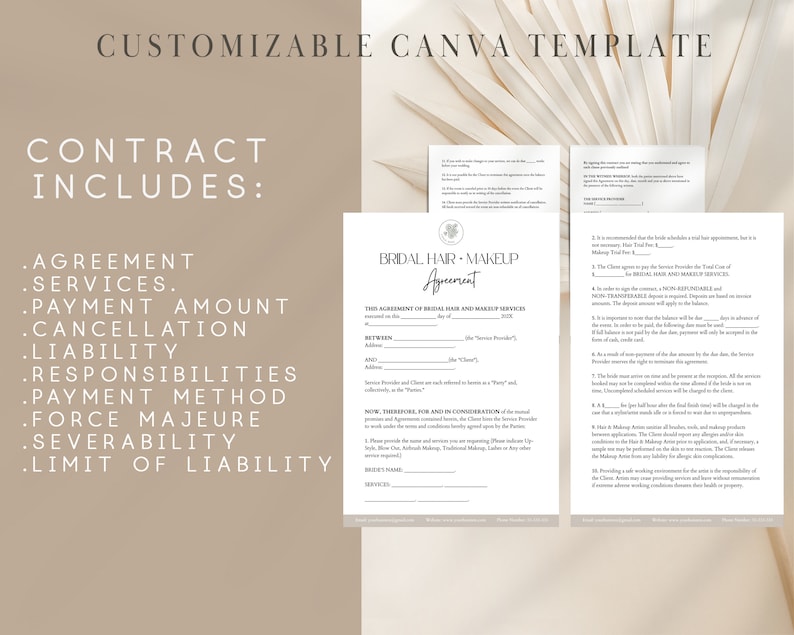 Bridal Hair Stylist Contract Template Editable CANVA Bridal