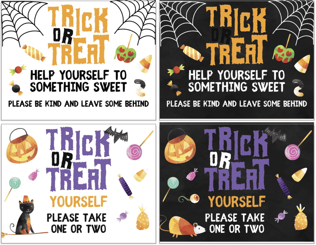 Printable Halloween Candy Signs Trick Or Treat Sign: Free Halloween