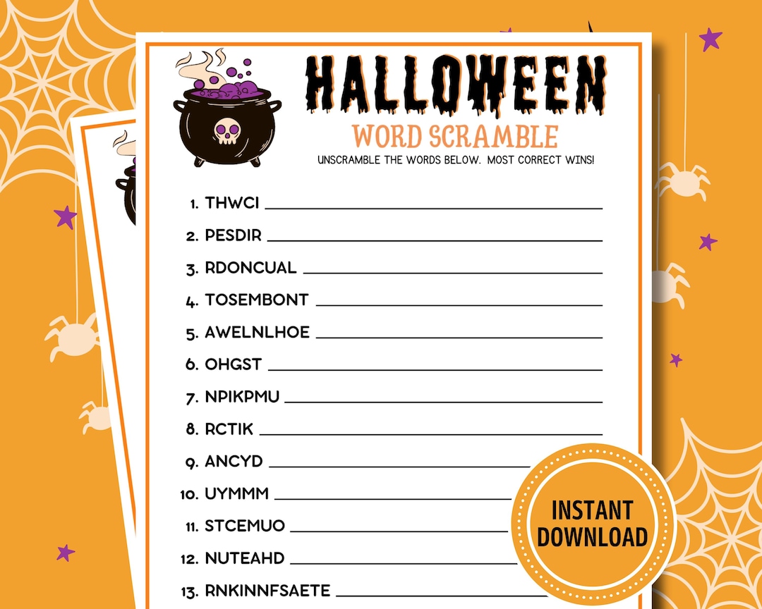 Halloween Word Scramble Game Printable Instant Download Etsy