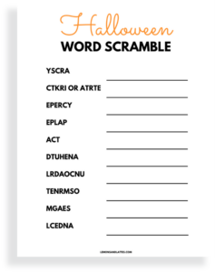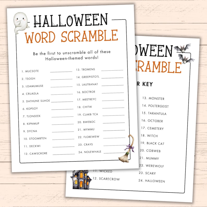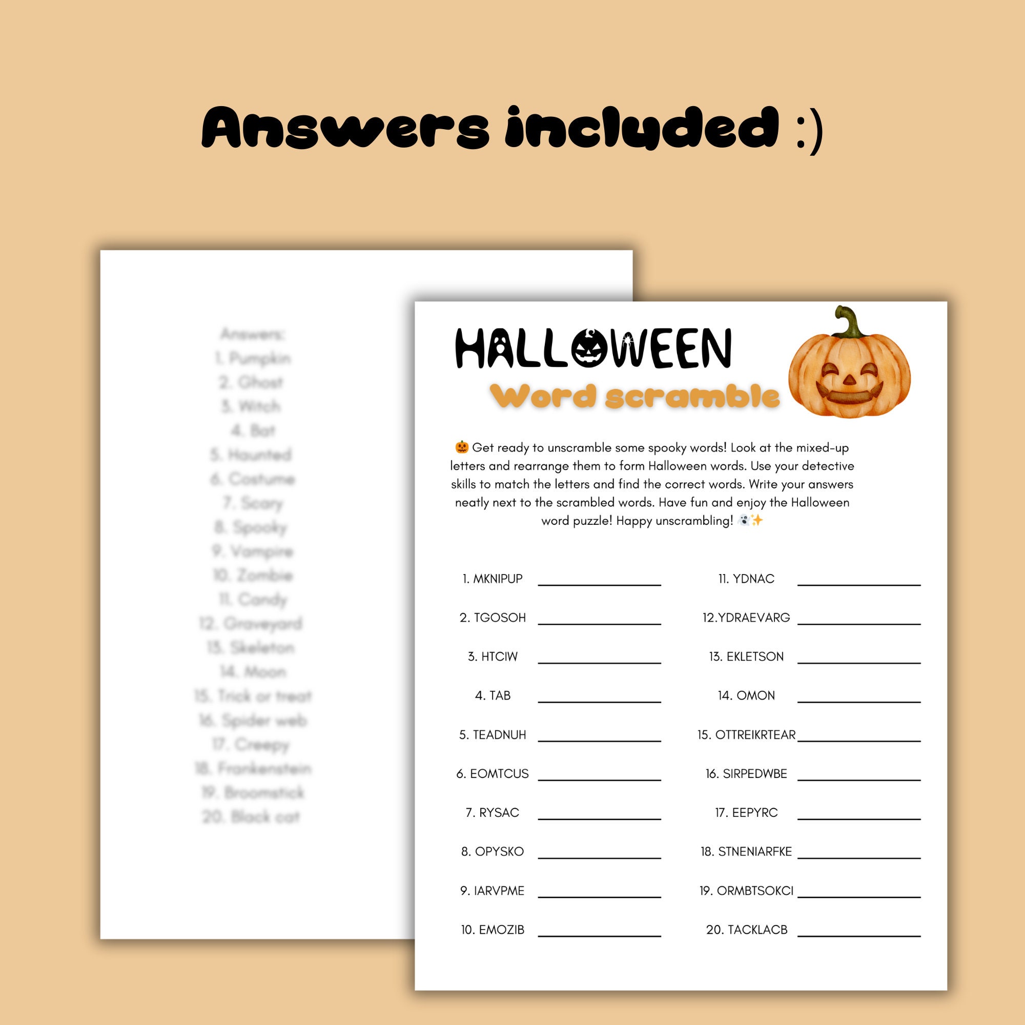 Halloween Word Scramble Printable Game for Kids and Adults With Answers