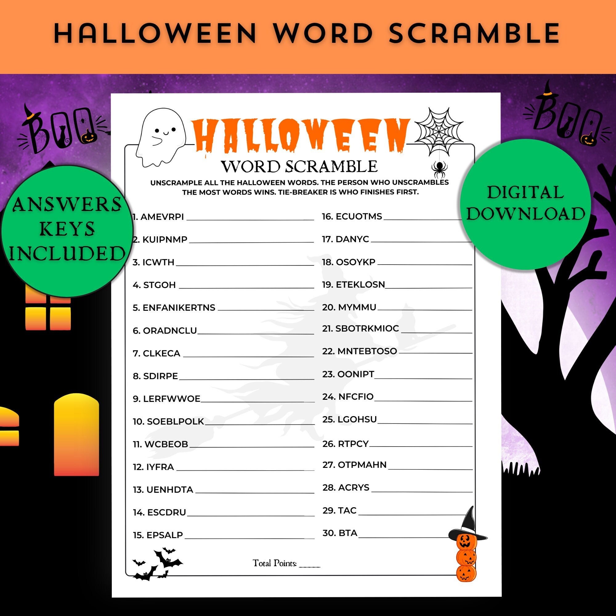Halloween Word Scramble Printable Game With Answer Key Etsy
