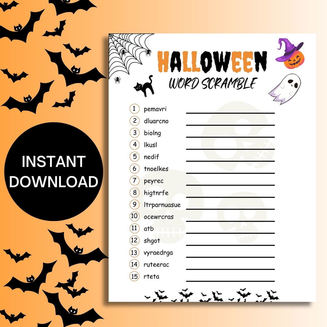 Halloween Word Scramble Printable Halloween Party Game for Kids Teens