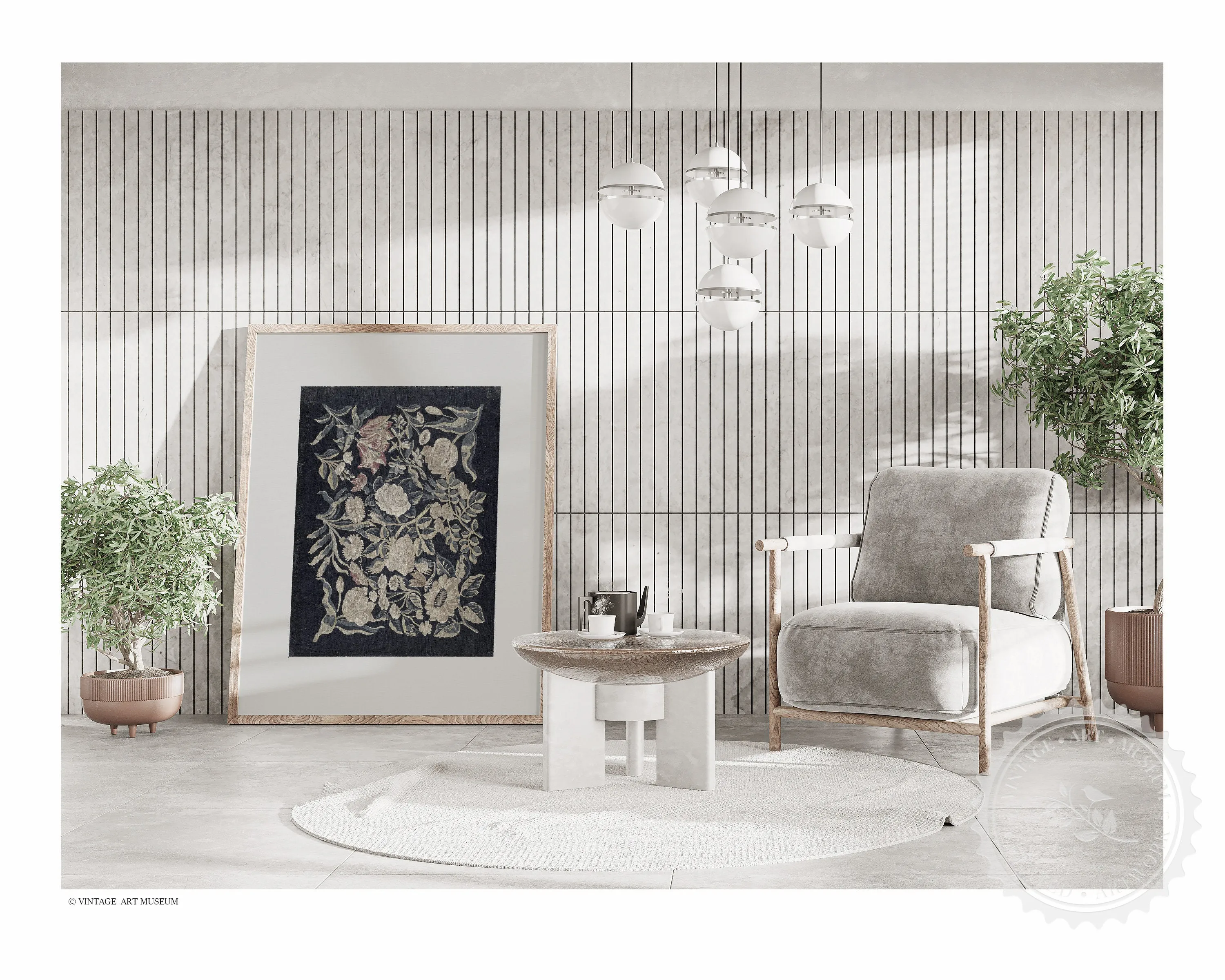 Navy Blue Textile Wall Art Vintage Print Floral Rug Pattern Printable